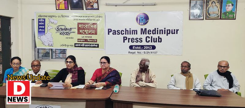 নারী নির্যাতন রোধে পাহাড় থেকে সমতল অঙ্গীকার যাত্রায় সামিল হবেন মহিলারা। ৯ থেকে ১৬ ডিসেম্বর সারা রাজ্য জুড়ে অঙ্গীকার যাত্রা হবে ‘জাগো নারী, জাগো বহ্নিশিখা’ সংগঠনের ব্যানারে। সেই যাত্রা মেদিনীপুর শহরও পরিক্রমা করবে। ২৯ নভেম্বর মেদিনীপুর শহরের কলেজ স্কোয়ারে অবস্থিত বিপ্লবীদের মূর্তির পাদদেশে মোমবাতি প্রজ্জ্বলন করা হবে সংগঠনের পক্ষ থেকে। ওই কর্মসূচিকে সামনে রেখে শনিবার বিকেলে সাংবাদিক সম্মেলন করে। উপস্থিত ছিলেন সংগঠনের অভ্যর্থনা কমিটির মেদিনীপুর শহর সভাপতি রোশেনারা খান, সম্পাদিকা অনিন্দিতা জানা, জগবন্ধু অধিকারী, রেখা সাহু,সুরেশ চন্দ্র দাস,সুদীপ্তা রানী সাঁতরা প্রমুখ।গোটা দেশ জুড়ে বেড়েই চলেছে নারী নির্যাতন, ধর্ষণ, খুনের ঘটনা। অপরাধীদের বিরুদ্ধে দৃষ্টান্তমূলক শাস্তির দাবিতে পথে নেমেছেন মহিলা-পুরুষ নির্বিশেষে। ঘরে বাইরে বিভিন্ন জায়গায় নির্যাতনের শিকার হতে হচ্ছে মহিলাদের।