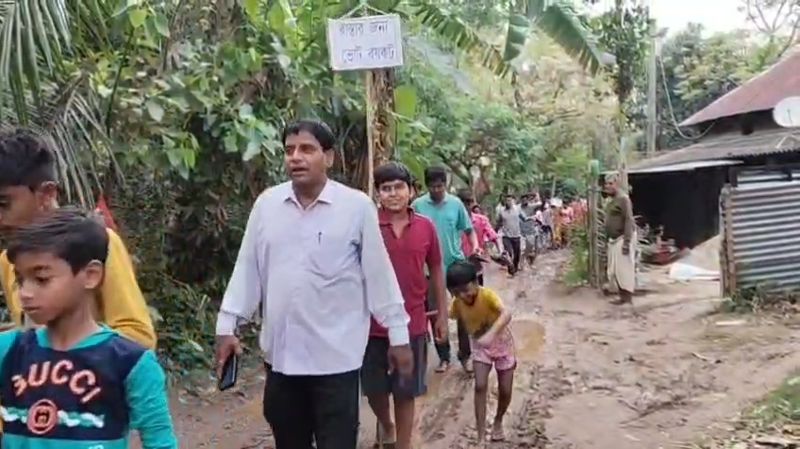 Chandrakona Election : ‘No Road No Vote ‘ প্রার্থীদের পাশাপাশি এবার মিছিল করলো এলাকার গ্রামবাসীরা, তবে ভোটের নয় রাস্তার জন্য