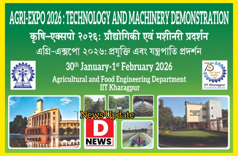 ইন্ডিয়ান ইনস্টিটিউট অফ টেকনোলজি (আইআইটি) খড়গপুরের কৃষি ও খাদ্য প্রকৌশল বিভাগ (এজিএফই) ৩০ জানুয়ারী থেকে ১ ফেব্রুয়ারী পর্যন্ত আয়োজন হচ্ছে”কৃষি-এক্সপো ২০২৬, প্রযুক্তি ও যন্ত্রপাতি প্রদর্শনী”।মূলত কৃষিক্ষেত্রে দক্ষতা উন্নয়ন, প্রযুক্তি গ্রহণ এবং উদ্যোক্তা তৈরির লক্ষ্যে এই তিন দিনের অনুষ্ঠানটি আয়োজন করা হচ্ছে বলে জানায় আইআইটি।