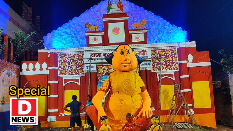 গতবারের আলিবাবার চল্লিশ চোর থিমের খুল জা সিম সিম ব্যাপক পরিমাণে নাম কুড়িয়ে ছিল জেলা বাসির। খুল জা সিম সিমের সেই দরজা বন্ধের দৃশ্য বিভিন্ন পত্রপত্রিকা সহ সোশ্যাল মাধ্যমে ব্যাপক পরিমাণে ভাইরাল হয়।যাকে সম্বল করেই এবারে গোপাল ভাঁড়।সেই সঙ্গে গোপাল ভাঁড়ের রাজপ্রাসাদে কিভাবে দুর্গাপুজো হয় তাও বর্ণনা করে তুলে ধরা হয়েছে এই মন্ডপে।যদিও শেষ তুলির টান চলছে মন্ডপের দরজায় শিল্পীদের।