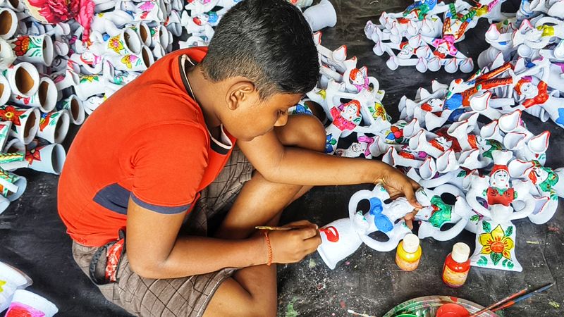 বাংলার বাঙালির বারো মাসে তেরো পার্বণের আরেক পার্বণ হল দীপাবলি উৎসব।তবে এই দীপাবলীর অন্যতম আকর্ষণ হল পশ্চিম মেদিনীপুর, পুরুলিয়া, বাঁকুড়া ঝাড় গ্রামের দেওয়ালি পুতুল।মূলত এ দেওয়ালি পুতুল মাটির তৈরি করে তাকে পুড়িয়ে রং করে ভিন্ন ভিন্ন আকৃতির গড়ে তোলা হয়।আর সেই দেওয়ালি পুতুল তার নির্দিষ্ট নৈবেদ্য খই, মুড়িমুড়কি সহকারে দিয়ে পূজো করা হয় এ দীপাবলীর দু দিন।যদিও এই দেওয়ালি পুতুলের বিভিন্ন ভ্যারাইটি বিগত কাল ধরে হয়ে আসছে গোটা মেদিনীপুর জুড়ে।মেদিনীপুর শহরের কুমোর পাড়ার কুমোরেরা প্রতিবছর অপেক্ষা করে থাকেন এই দীপাবলিতে দেওয়ালি পুতুল গড়ার উদ্দেশ্যে।সারা বছরের তাদের যা ইনকাম হয় তার বেশিরভাগটাই এই দেওয়ালি পুতুলের উপরে নির্ভরশীল তারা।কিন্তু এবারে পরিস্থিতি আলাদা।