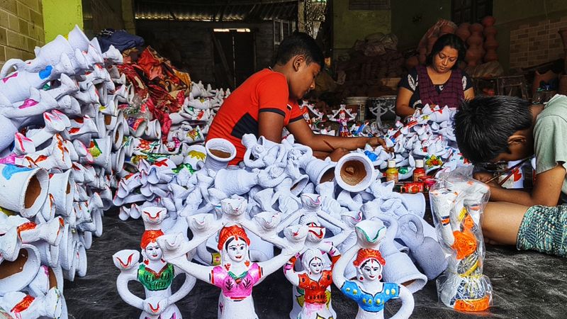 এ বিষয়ে শিল্পী শিলা দাস,জ্যোৎস্না পাইনরা বলেন,”যেভাবে দিনের পর দিন মাটি বালি এবং রঙের দাম বাড়ছে সেই সঙ্গে এই টানা বৃষ্টিপাত হয়েছে তাতে আমরা বিপর্যস্ত।না পেয়েছি সরকারি সাহায্য না পেয়েছি কোন ছিটে ফাটা ত্রিপল।কিন্তু রুজি রোজগারের টানে এই পুতুল আমরা গড়ে যাচ্ছি।জানি না এই পুতুলের ভবিষ্যৎ কি!তবে আমরা পুতুলের দাম বাড়ায়নি। বংশপরম্পরায় এই পুতুল আমরা করে চলছি। এবারের প্রতিকূল পরিস্থিতি যার জন্য পুতুল শুকোতেও দেরি হয়েছে।