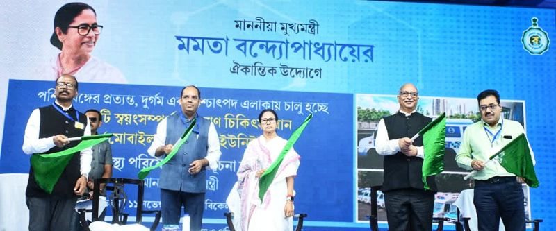 রাজ্যের প্রত্যন্ত গ্রাম,পাহাড়ি এলাকায় স্বাস্থ্য পরিষেবা পৌঁছে দেওয়ার জন্য এ বার বড় পদক্ষেপ করল রাজ্য সরকার। এইদিন স্বাস্থ্যভবন থেকে ১১০টি মোবাইল মেডিক্যাল ইউনিটের উদ্বোধন করেন রাজ্যের মুখ্যমন্ত্রী মমতা বন্দ্যোপাধ্যায়।এই ভ্যানে চিকিৎসা সংক্রান্ত আধুনিক যন্ত্র, প্রাথমিক চিকিৎসার জন্য জিনিসপত্র থেকে শুরু করে বেশ কিছু প্রয়োজনীয় ওষুধ থাকবে। মমতা বন্দ্যোপাধ্যায় জানান, রাজ্যসভার সাংসদদের উন্নয়নের তহবিল বাবদ প্রাপ্ত ৮৪ কোটি টাকা ব্যয়ে ২১০টি মোবাইল মেডিক্যাল ইউনিট তৈরি রাখা হয়েছে। এ দিন তার মধ্যে ১১০টির উদ্বোধন করা হয়েছে। এই মোবাইল মেডিক্যাল ইউনিটগুলি ভাম্যমাণ।