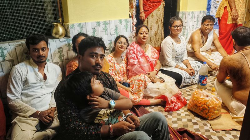 আমাদের সারা রাত ধরে পুজো চলে ভোরবেলায় মা খুশি হয়ে ফুল ছুঁড়ে দেন আশীর্বাদ স্বরূপ। এরপর দুপুরবেলায় আমাদের অন্নকূটের ব্যবস্থা করা হয় ভক্তদের জন্য।